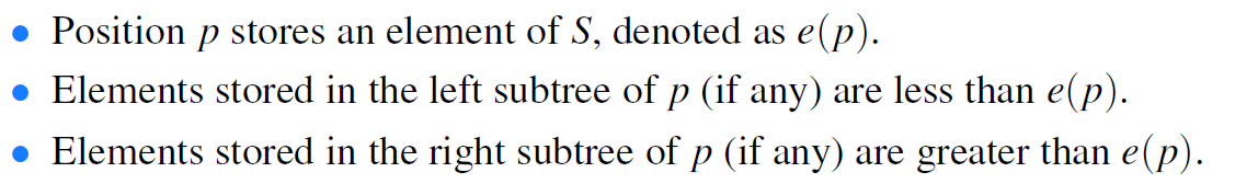 . Search for value v with position p element e(p). If v < e(p) visit to left, if opposite, visit to right, else equals found successfully.