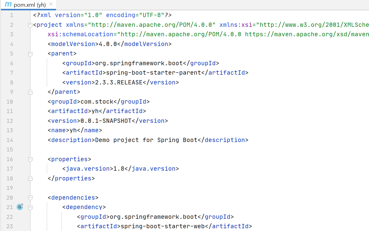 Spring boot에서 의존성 주입을 담당하는 XML은 pom.xml 입니다.