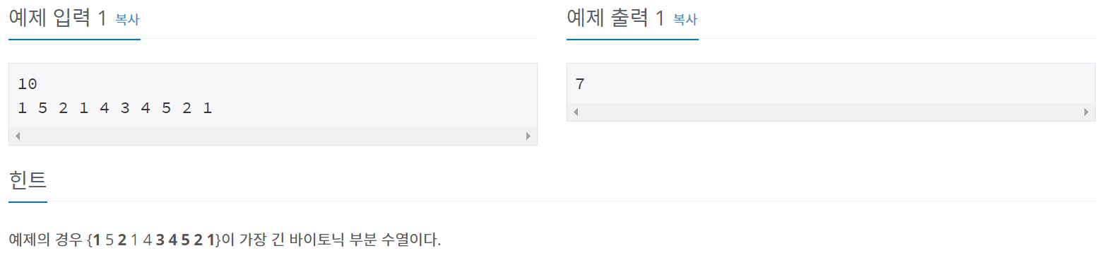 11054번: 가장 긴 바이토닉 부분 수열